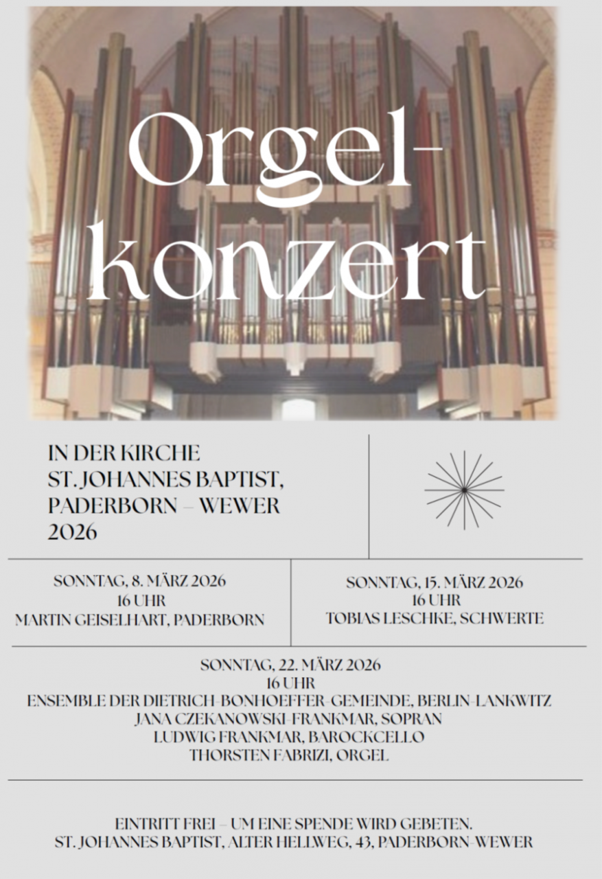 Im März veranstaltet das Dekanat Paderborn die Orgelkonzertreihe in Wewer.